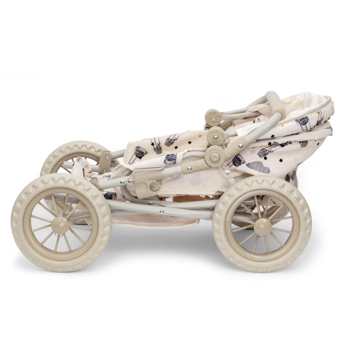 Dockvagnen har ett handtag, som är justerbart för att passa barn med olika längd, samt en mjuk urtagbar bärinsats. Med ett justerbart säte kan dockan ligga och sova eller sitta upp och titta. Fällbar sufflett och praktisk shoppingkorg undertill. Mått: L60xB36xH70 cm. PVC-fri. Från 3 år.