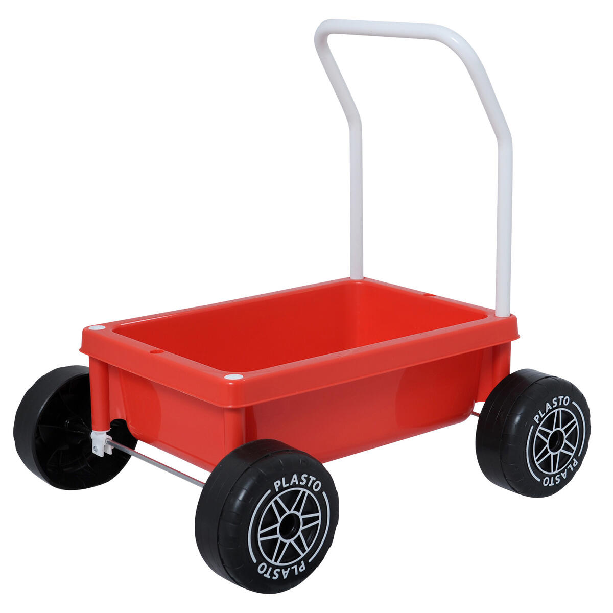 En lära-gå-vagn som passar för både inom- och utomhusbruk. Bromsarna justeras med skruvar. Med tysta hjul av TPE. Av livsmedelsgodkänd PE. PVC-fri. Från 1 år.