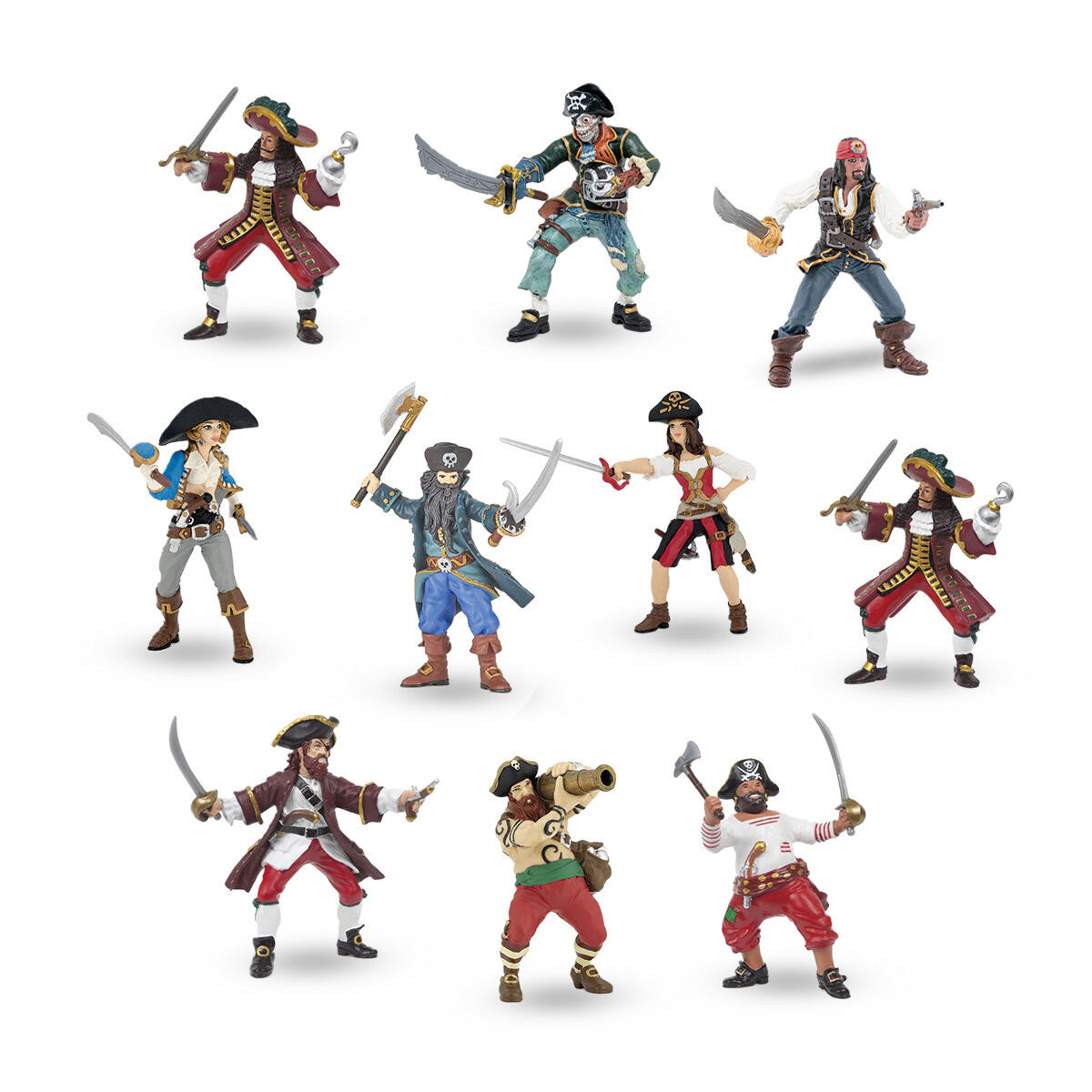 6 st/fp. En uppsättning piratfigurer. Innehållet varierar, flera av samma modell kan förekomma. Av PVC utan förbjudna ftalater. Från 3 år. Mått: Höjd i varierande storlek 8-10,5 cm.