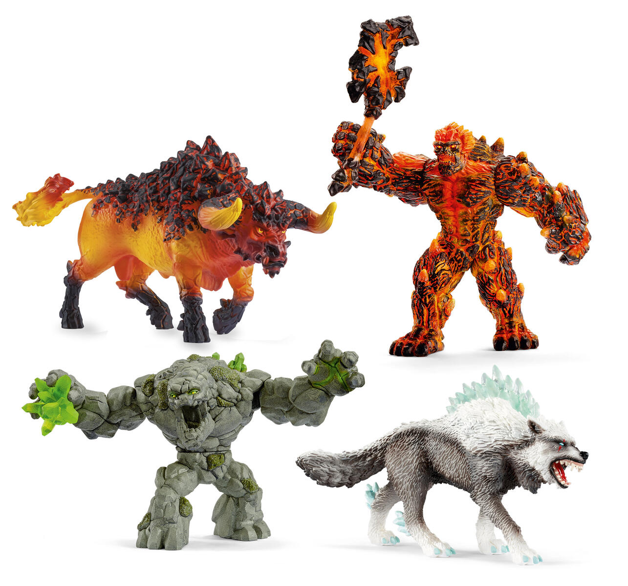 Ett set med figurer från de olika Eldradorvärldarna: vatten, sten, is och lava. Den största figuren mäter 15,5x18 cm, den minsta mäter 9,3x12 cm. Av PVC, fri från ftalater. Från 3 år.
