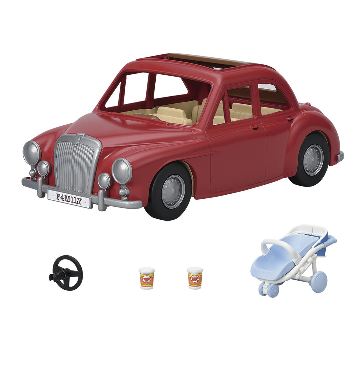 Sylvanian Families röda familjebil passar perfekt för en familjeutflykt. På den här bilen kan man öppna taket, tanklocket och bagageutrymmet. Bilen har plats för 4 Sylvanian Families-figurer. Material: HIPS, PS, ABS och MABS. Mått: L25xB12xH10 cm. PVC-fri. Från 3 år.