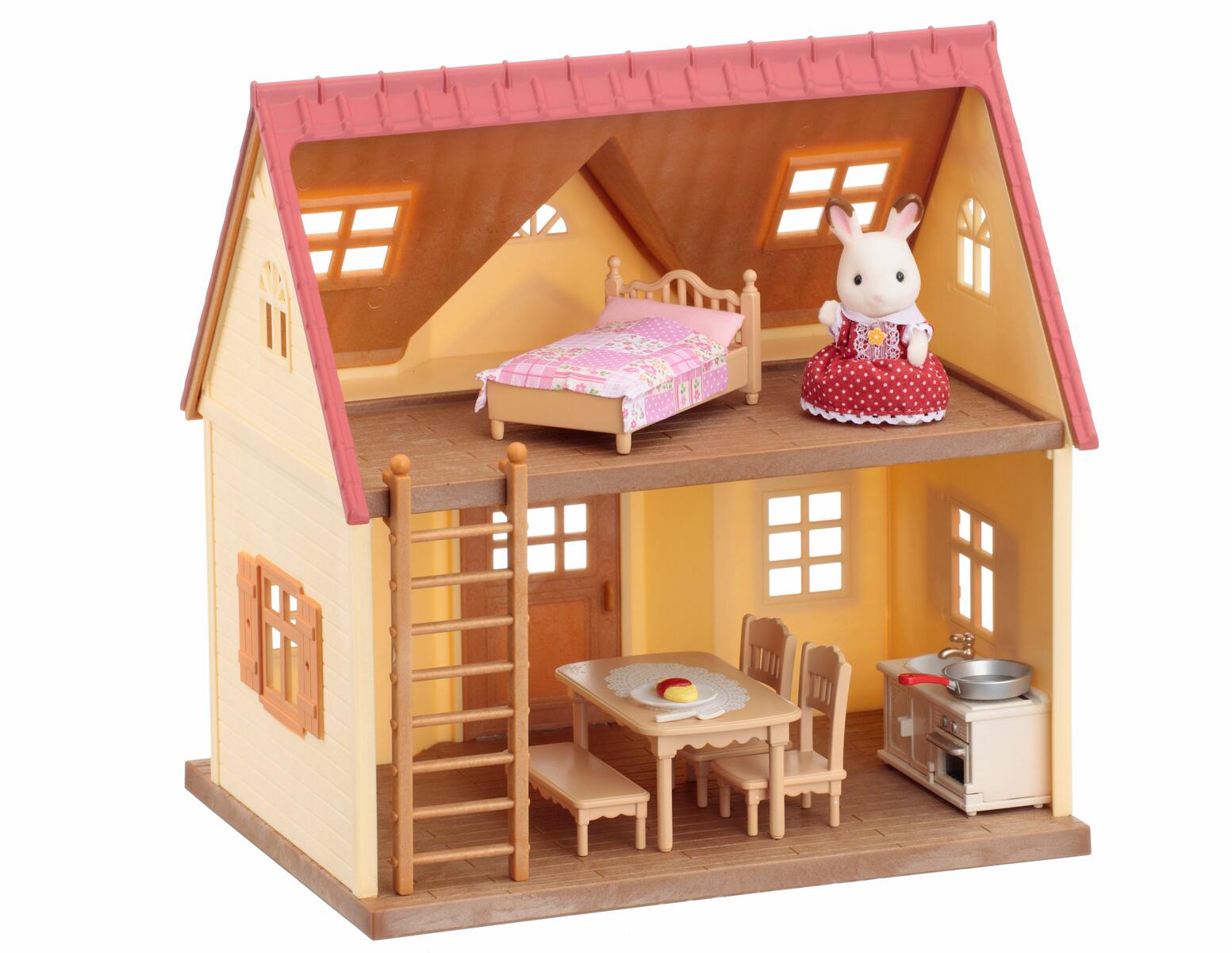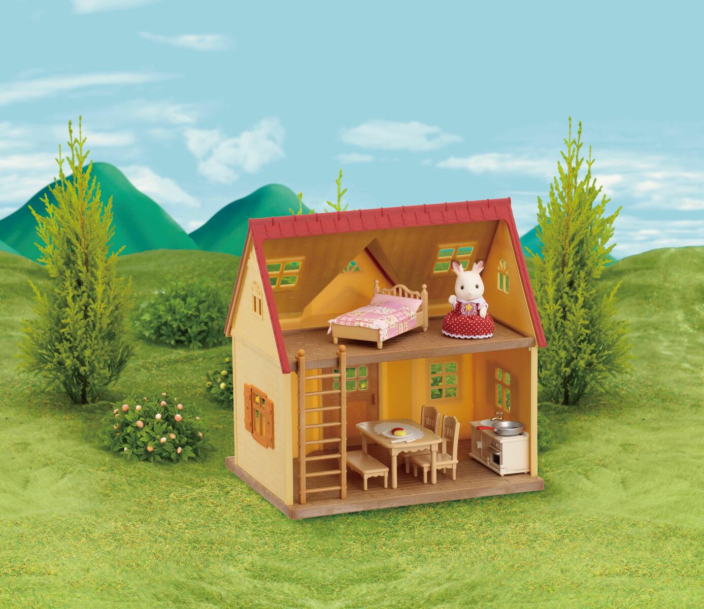 Sylvanian Families starthus är ett perfekt första hem för dina söta små Sylvanian Families-vänner! Det är ett fint hus i två våningar som dessutom innehåller säng, bord och stolar, köksinredning, småtillbehör samt en stege. Övervåningen kan lyftas av så att du kommer åt bottenvåningen. 1 Sylvanian Families-figur ingår. Material: GPPS, PVC och ABS. Från 3 år.