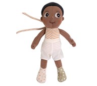 Unik och mjuk docka som ger en välkomnande och varm känsla. Docka av polyester, stoppning av återvunnen polyester. Avtagbara kläder för att kunna tvättas. PVC-fri. Från 0 år.