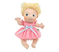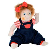 Mjuk handgjord docka med egen personlighet och avtagbara kläder. Hår, hud och kläder är tillverkat av 100 % ekologisk bomull, stoppning av återvunnen polyester. Mått: 35 cm lång. Dockan kan maskintvättas i 30 °C och torktumlas på låg temperatur. Kläderna handtvättas. PVC-fri. Från 0 år.