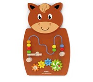 Väggtavla med olika funktioner och spel gjorda av FSC-märkt kvalitetsträ. Robust struktur som kan användas i flera år. En idealisk leksak för träning av finmotoriken. Mått: 91x32x6 cm. PVC-fri. Från 18 månader.