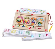 Ett spännande spel som stimulerar barns medvetenhet om rumsliga relationer, öga-handkoordination, färgigenkänning och utvecklar räkne- och sifferkunskaper på ett roligt sätt. Använd den bifogade magnetiska stickan för att spåra de magnetiska bollarna genom labyrinten. Mått: L30xB22,5xH1,6 cm. FSC-märkt trä. Från 18 månader. PVC-fri.
