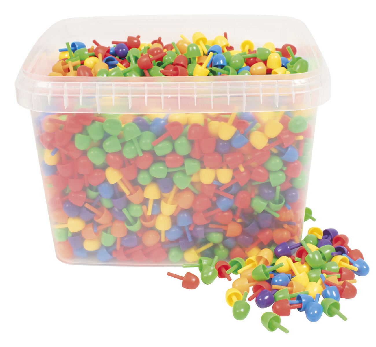 1 kg. Skapa figurer och mönster genom att placera peggarna i plattan. Det är både lärande, roligt, kreativt samt utvecklar hand-öga koordinationen och färgkunskaper. Piggar i storlek ø 10 mm. Av PE. PVC-fri. Från 3 år.