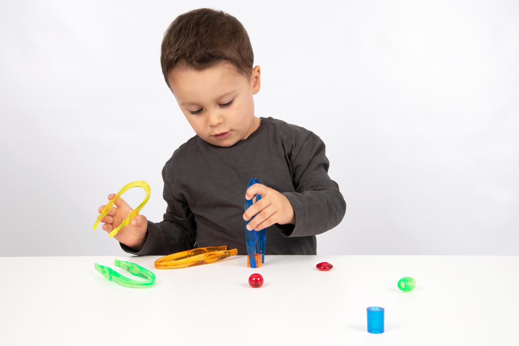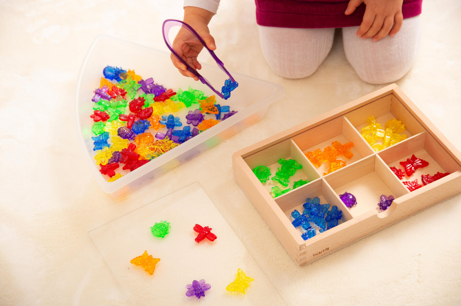 12 st/fp. Ljusa och roliga pincetter med en idealisk storlek för barn att hantera. Används för att plocka upp små saker vid sortering eller mönsterläggning, för att förbättra finger- och handstyrka, utveckla koordinationsförmåga och lära sig om färgblandning. Inkluderar plastbehållare för praktisk förvaring. Av akryl. PVC-fri. Från 18 månader.