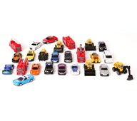 Fräcka bilar i metall med gummerade däck och plastdetaljer av ABS. 10 blandade modeller i varierande utförande, dubbletter förekommer. Längd cirka 7 cm. PVC-fri. Från 3 år.
