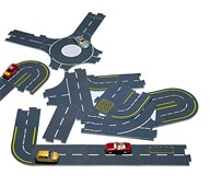 30 delar. En stor bilbana som kan pusslas ihop på olika sätt. Byggförslag medföljer. Mått: ca 100x75 cm, vägbana 10 cm bred. Yta av 100 % polyester och undersida av gummi, som gör att den inte glider. PVC-fri. Från 1 år.