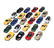 30 st/fp. Bilar av metall med plastdetaljer av hög kvalitet. Blandade modeller, dubbletter kan förekomma. Längd 7-8 cm. Av metall och ABS. PVC-fri. Från 3 år.