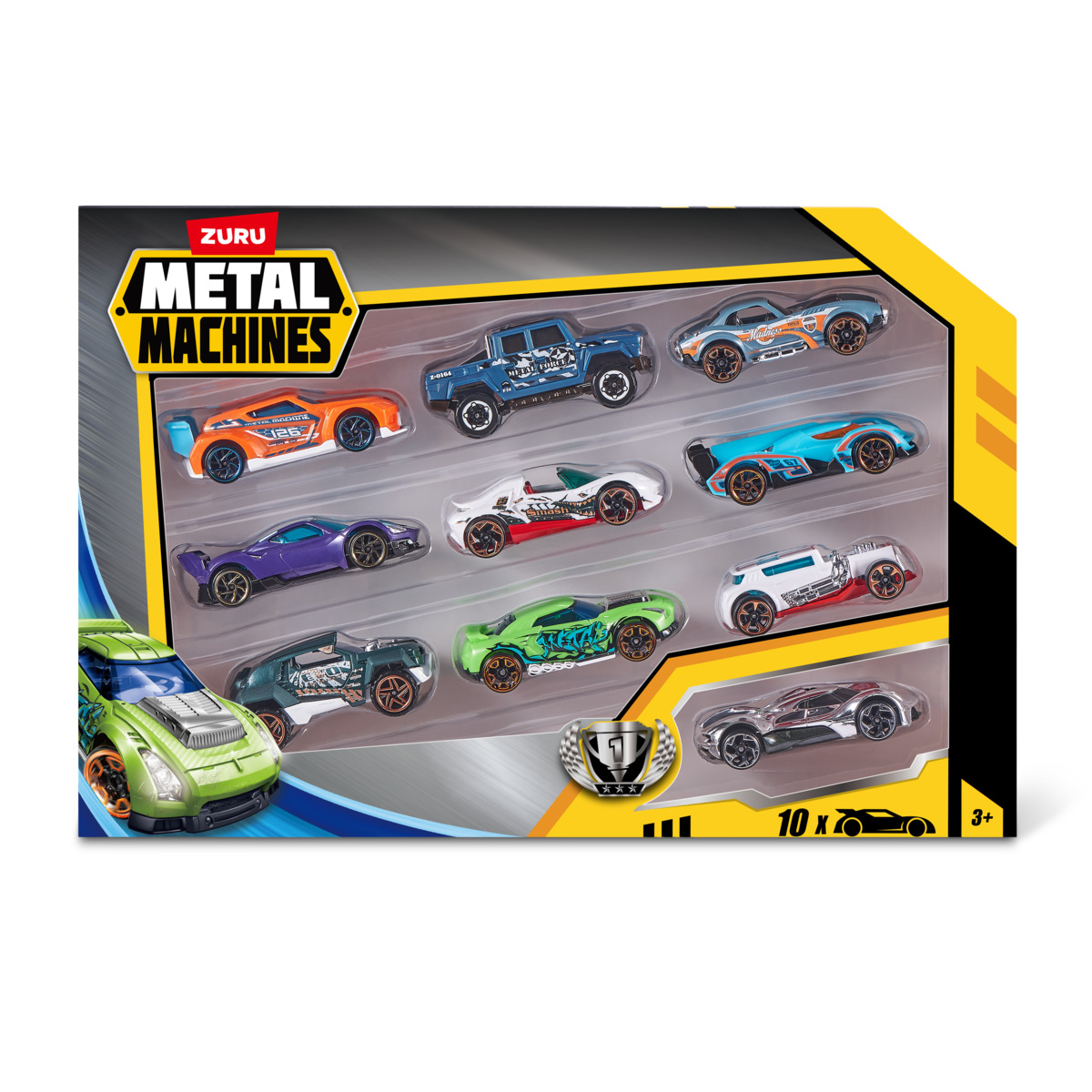 10 st/fp. Bilar av metall med plastdetaljer av hög kvalitet. Blandade modeller, dubbletter kan förekomma. Längd 7-8 cm. Av metall och ABS. PVC-fri. Från 3 år.