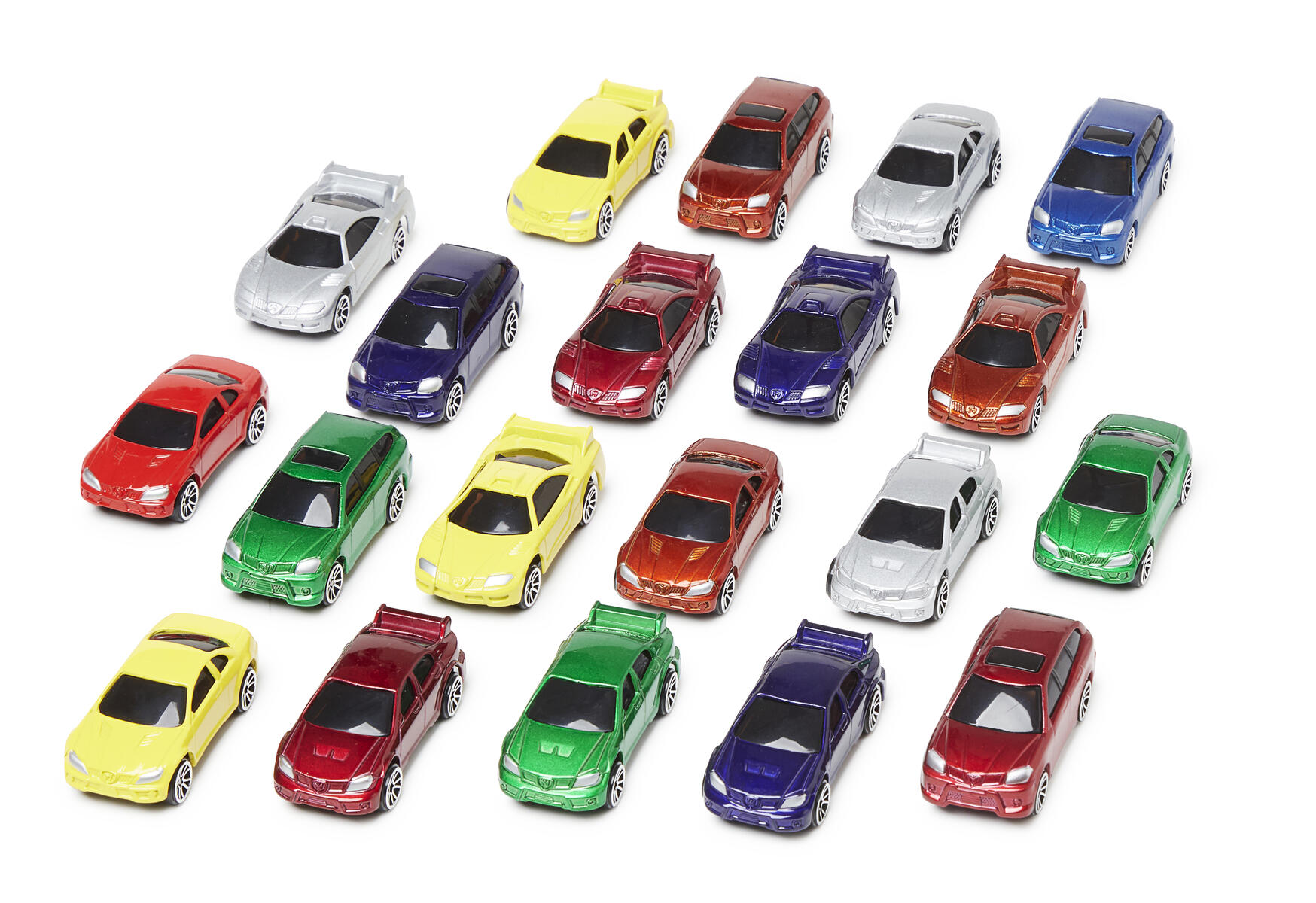 20 st/fp. Metallbilar med gummerade däck och plastdetaljer, dubbletter förekommer. Ett perfekt set för små bilfantaster! Längd: ca 7 cm. PVC-fri. Från 3 år.
