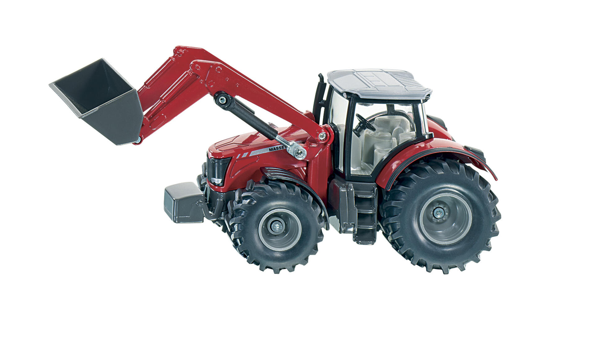 Du kan tryggt lasta olika typer av material med den här traktorn som har en rörlig skopa och arm. Det är ett rejält fordon av metall med plastdetaljer. Skala 1:50. Mått: 19,5x11,5x6,6 cm. Från 3 år.