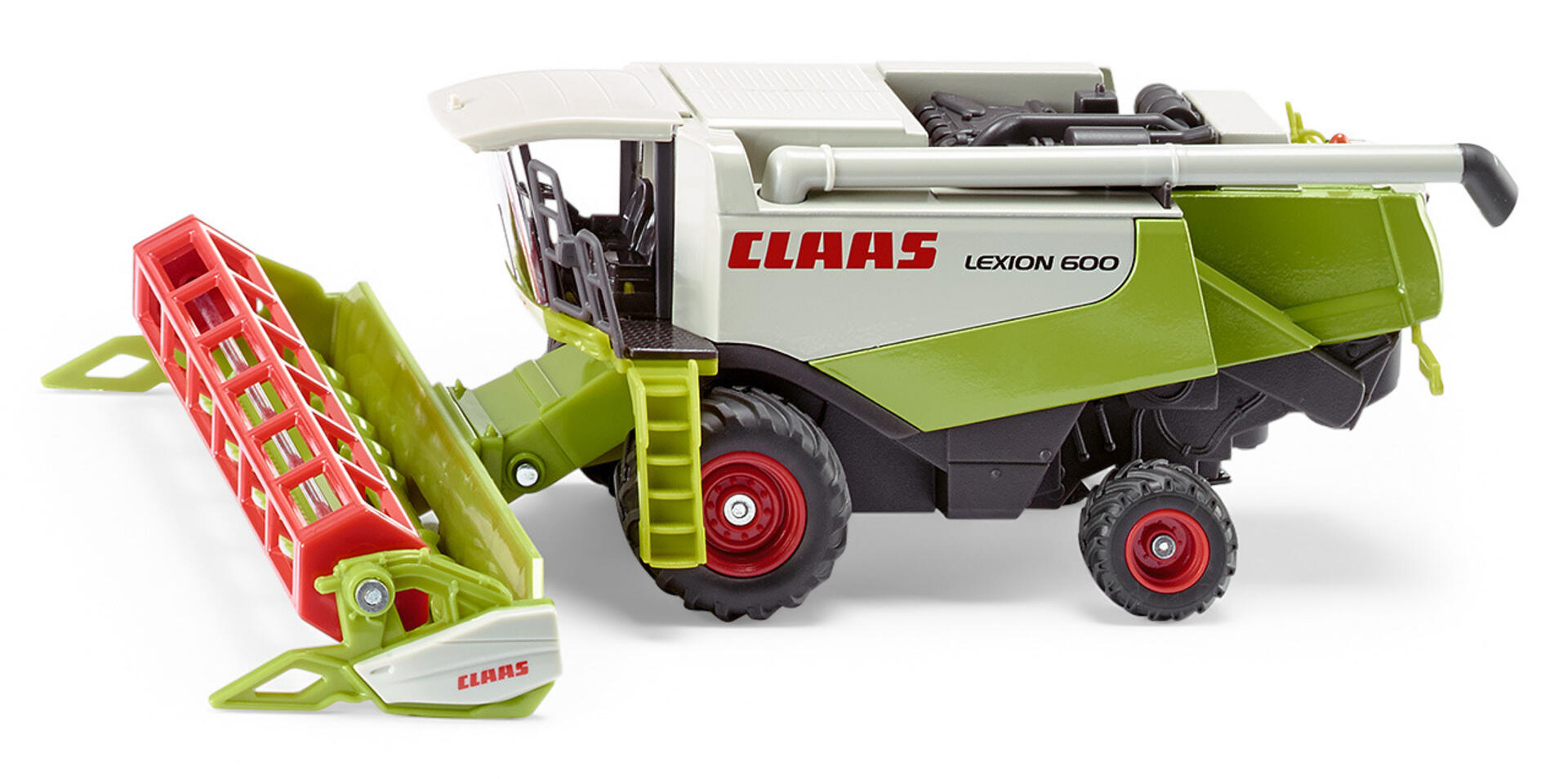 Skördetröska med överdel i metall och en rörlig vinsch i plast. Lastningsröret är justerbart. Dessutom har den smidiga gummidäck och originaldetaljer. Skala: 1:50. Längd: 23 cm. Från 3 år.