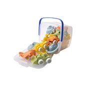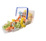 Knubbiga småbilar med djuransikte. Med gummihjul för tystare lek. Blandade modeller. Av livsmedelsgodkänd PE, hjul av LDPE. Levereras i praktisk förvaringshink med lock. Tål maskindisk. PVC-fri. Från 1 år.