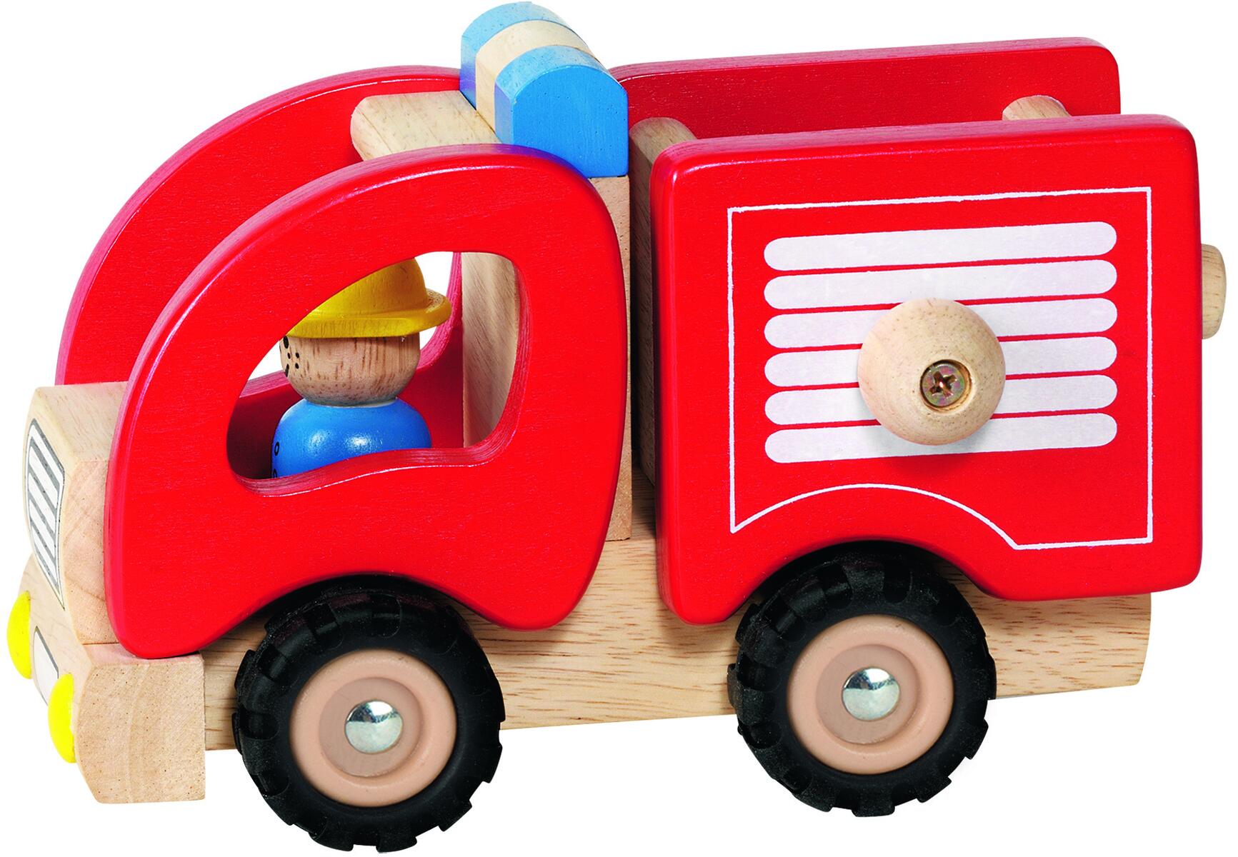 En stor och rejäl brandbil med avtagbart flak där man kan förvara brandslangarna. Med utdragbar stege som kan resas och vridas runt. Taket på förarhytten kan lyftas av och här finns det plats för brandmännen. Av FSC-märkt trä. Från 3 år.