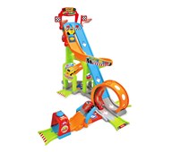 En rolig bilbana med många olika banor att prova, både branta backar, hopp, språngbräda och vippbräda. Levereras med 2 bilar. Av ABS- och PP-plast. PVC-fri. Från 18 mån.