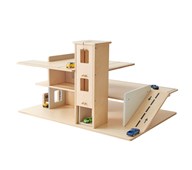Ett fint parkeringshus av FSC-märkt trä i 3 våningar. Med hiss, ramp och helikopterplatta. 3 bilar och en helikopter medföljer. Mått: 45x29x36 cm, Från 3 år. PVC-fri.