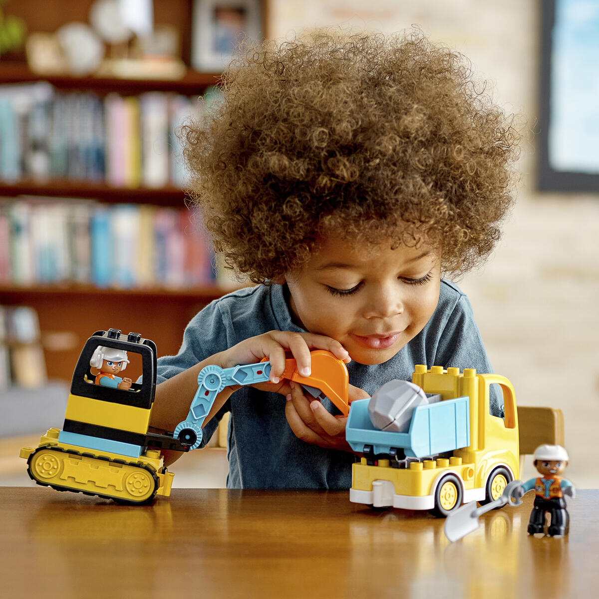 20 delar. Med 2 byggarbetarfigurer, en lastbil med tippfunktion och en grävmaskin med roterande skopa har små barn allt de behöver för att få byggarbetet klart! Barn utvecklar sina finmotoriska färdigheter när de styr och manövrerar fordonen och utför olika uppgifter på byggarbetsplatsen. Material: ABS. PVC-fri. Från 2 år.