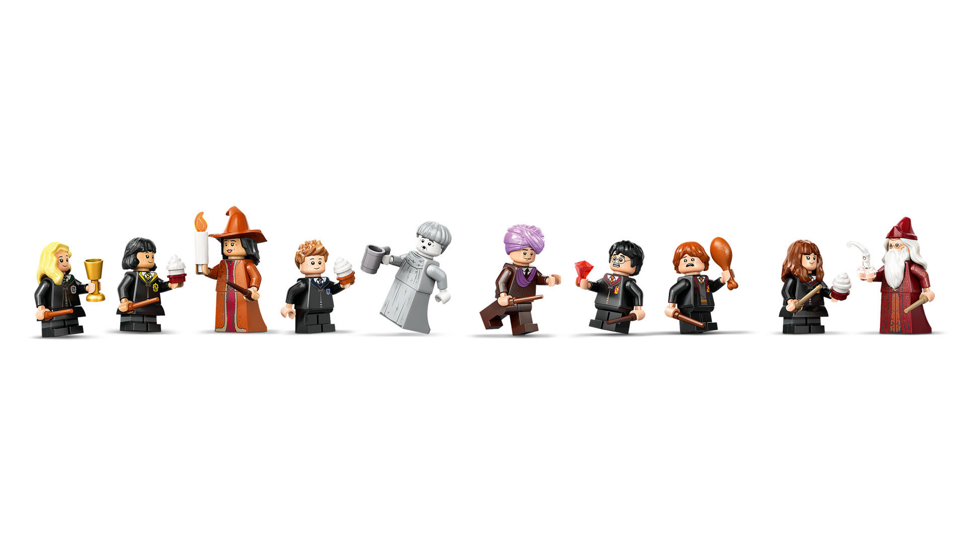 6 020 delar. Ett superstort set där alla äventyr på Hogwarts kan äga rum. Innehåller stora salen med elevhemsbanderoller, bänkar, bord, brinnande facklor och rörliga trappor, trolldrycksklassrummet, klassrummet för försvar mot svartkonster, skåpet med boggarten, schackrum med schackpjäser, vid-behov-rummet, hemlighetens kammare med basilisken och Tom Dolders dagbok, det hemliga rummet med djävulssnaran, Gryffindors sällskapsrum med eldstad och sittplatser. 4 minifigurer och 27 mikrofigurer medföljer. Material: ABS. PVC-fri. Från 16 år.