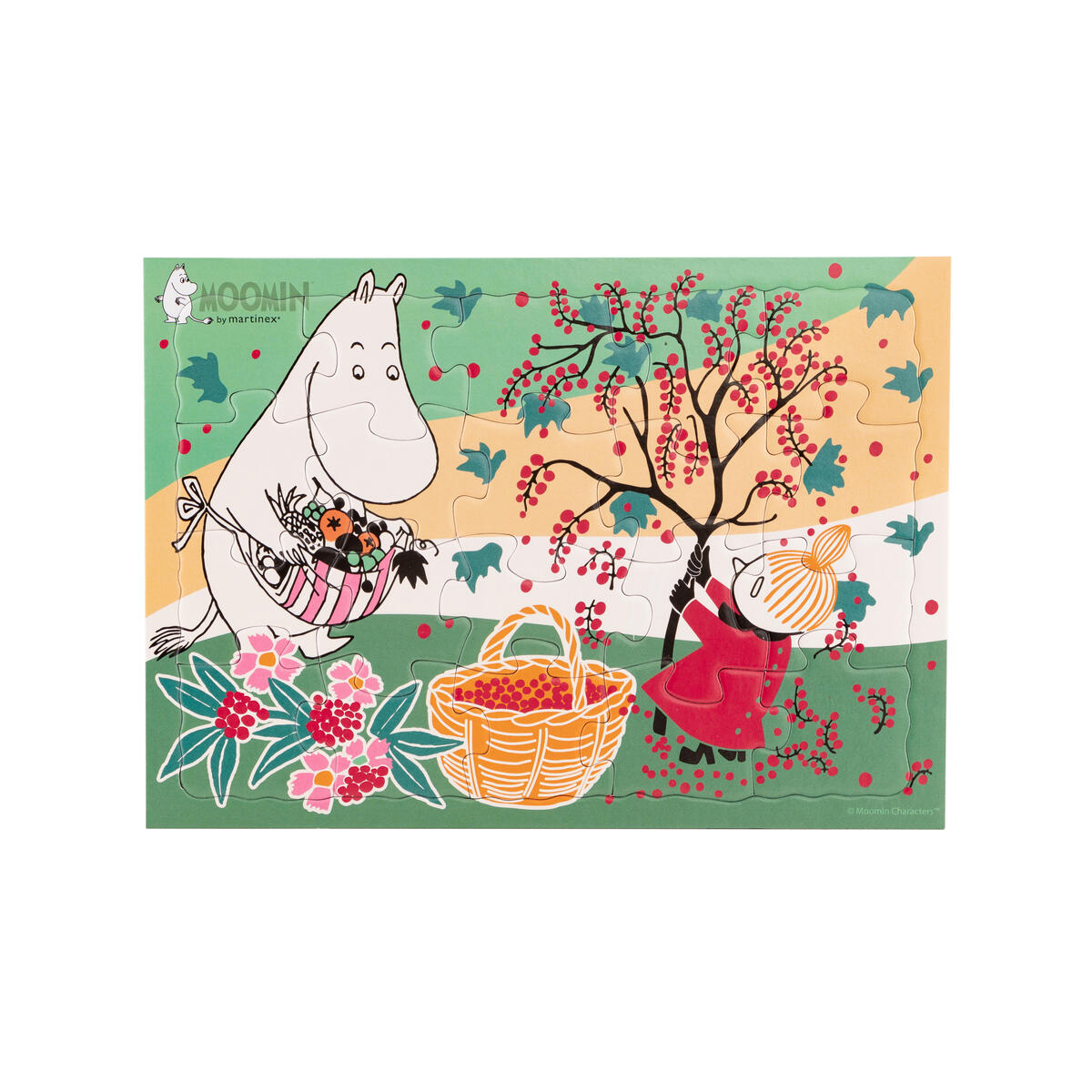 2 st/fp. 20 bitars rampussel i A5-storlek med fina motiv av Mumintrollet med vänner. Sortering om två olika 2-pack. Tillverkade av returkartong. Från 1 år.