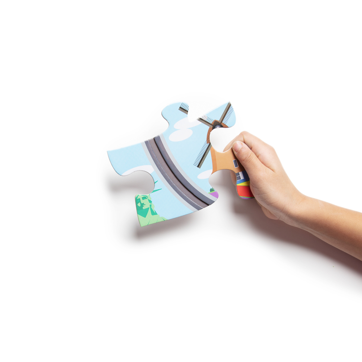 48 bitar. Lägg pusslet och kör sedan bilarna runt bilbanan till kända platser över hela världen. Mått: 90x60 cm. Ingående FSC. Rekommenderad från 4 år.