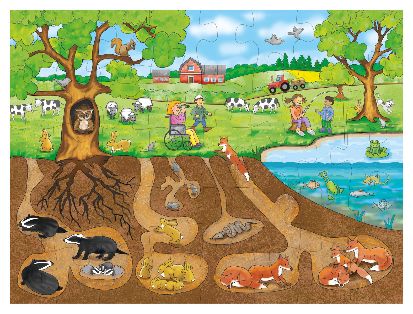 Detta lärorika årstidspussel ger barnen möjlighet att bekanta sig med årstiderna genom att känna igen olika lekar man gör olika tider på året. Detaljrikt pussel i trä som kan pusslas av flera personer samtidigt. PVC-fri. Från 4 år.