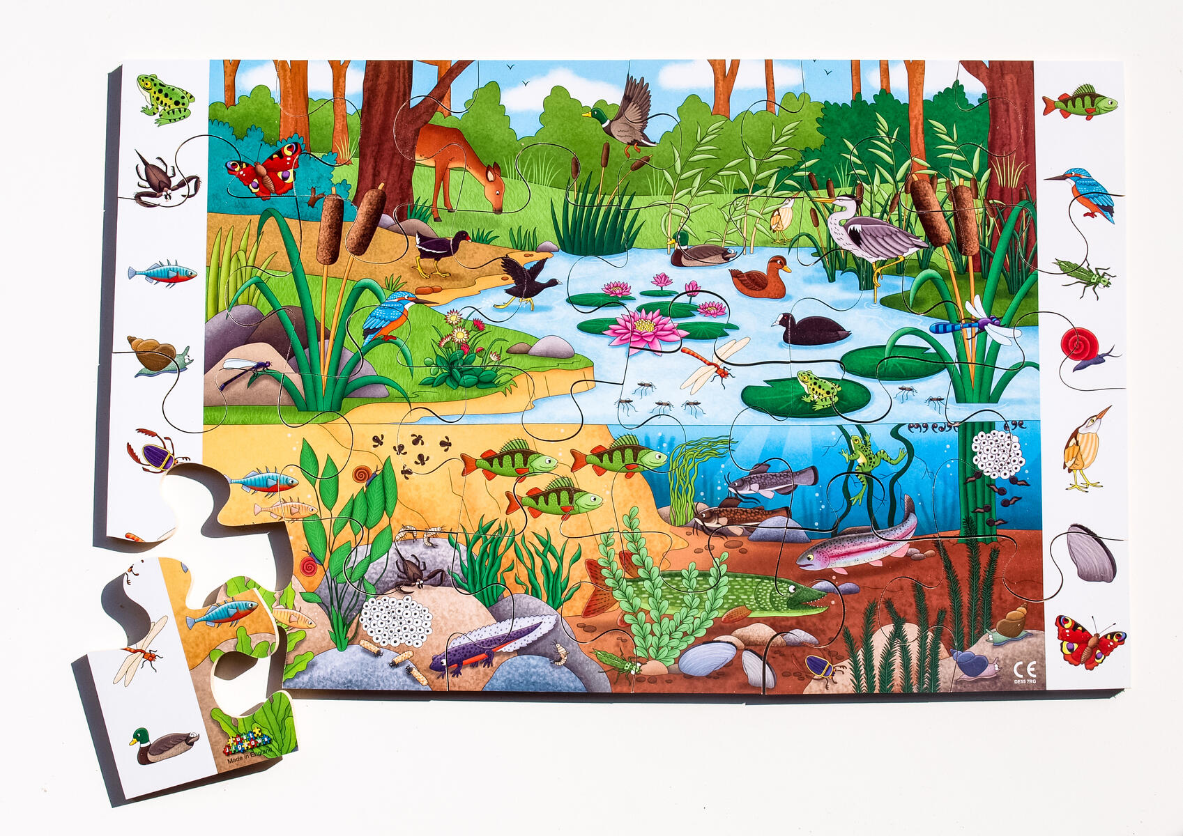 35 bitar. Detaljrikt pussel med stansade bitar som får formen som ett djur och andra kända karaktärer. Bitarnas form återfinns även i pusselramen för att barnen lättare ska hitta dess plats. Tjocka och solida bitar av kraftig FSC-märkt återvunnen kartong. PVC-fri. Från 3 år.