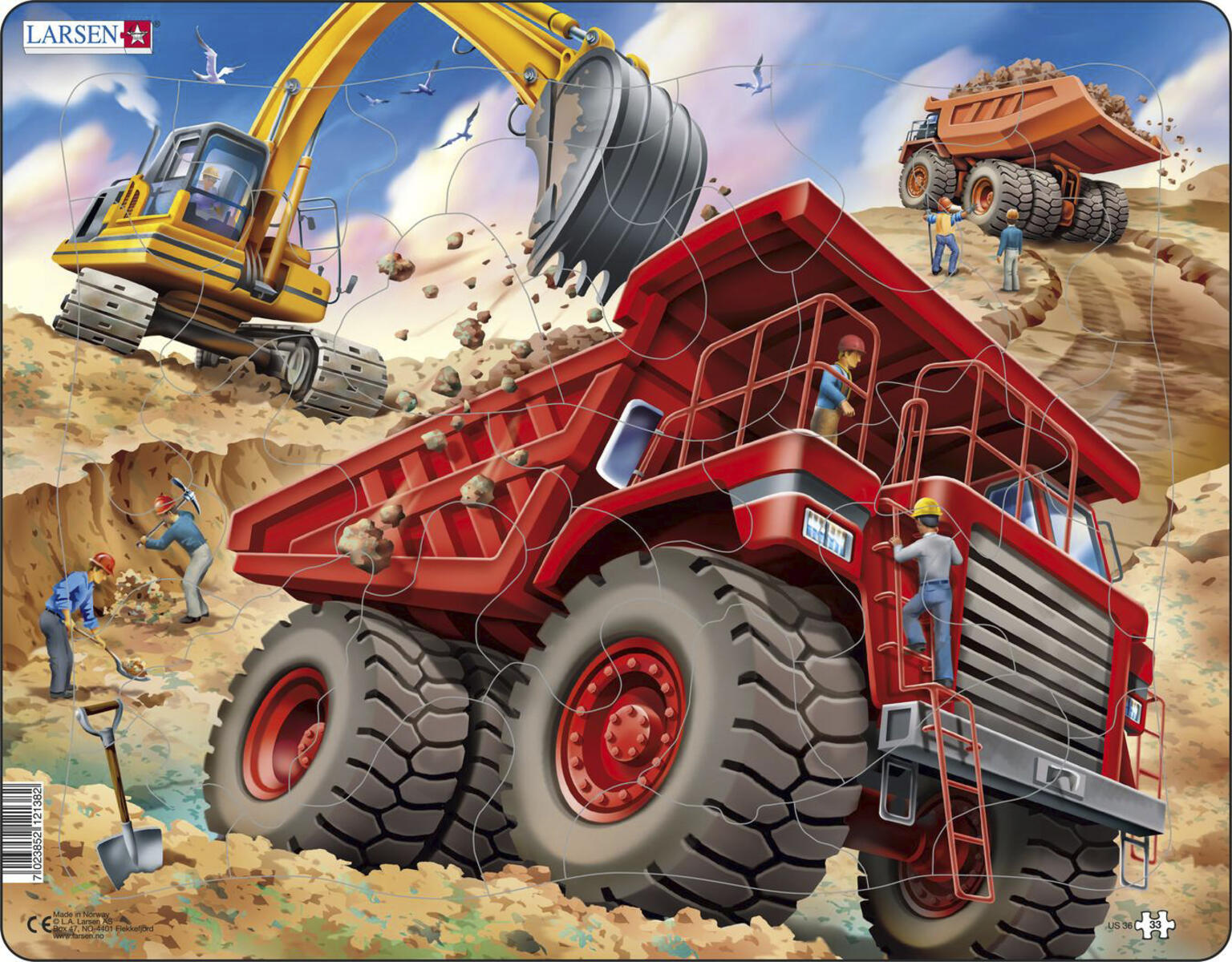33 bitar. Färgstarkt pussel med stansade bitar i olika former. Bitarnas form återfinns även i pusselramen för att barnen lättare ska hitta rätt plats. Tjocka och solida bitar av kraftig FSC-märkt återvunnen kartong. Mått: 36x28 cm. PVC-fri. Från 3 år.