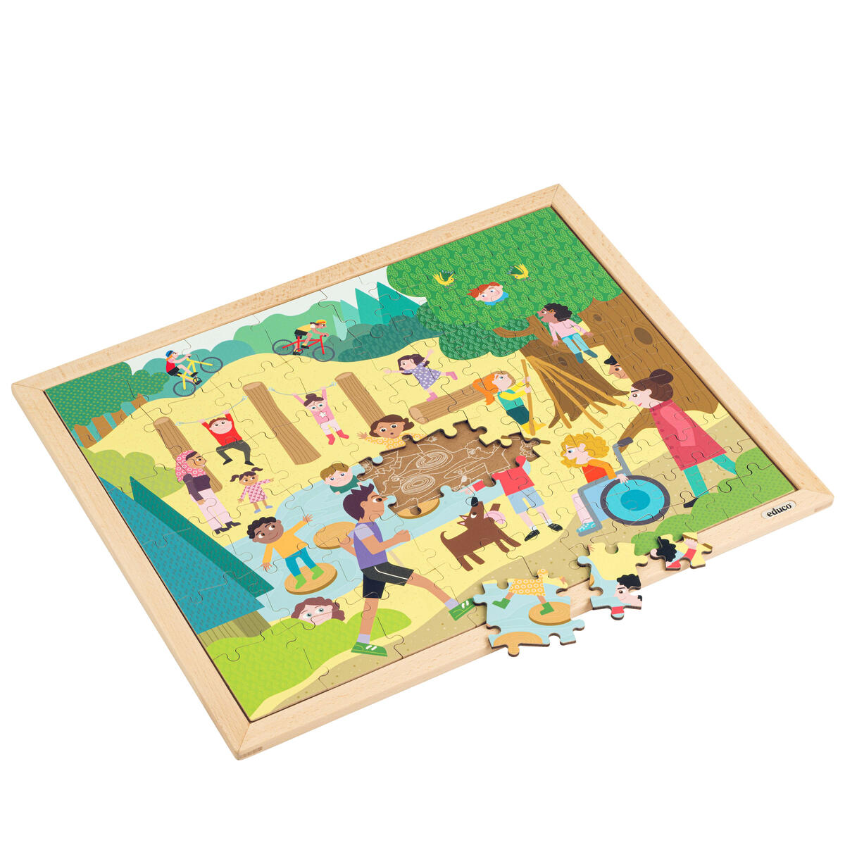 102 bitar. Rampussel med stora pusselbitar på vänster sida och små på höger sida. Barnen kan träna på att arbeta tillsammans för att slutföra pusslet. Mått: 50x40 cm. Av FSC-märkt trä. PVC-fri. Från 5 år.