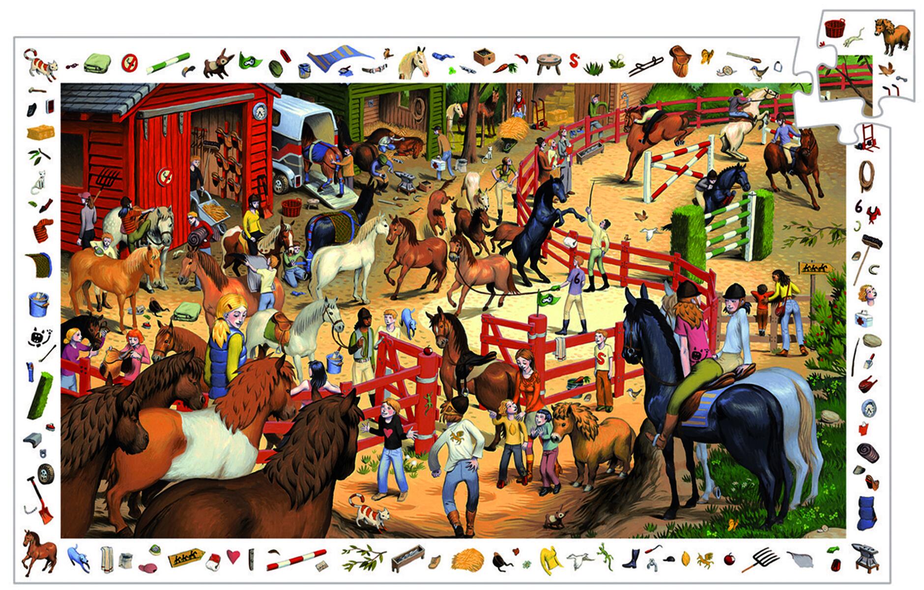 100 bitar. Ett mycket detaljrikt pussel med motiv av en riddarborg. Det finns en mängd figurer och föremål att upptäcka. Av kraftig kartong. PVC-fri. Från 5 år.