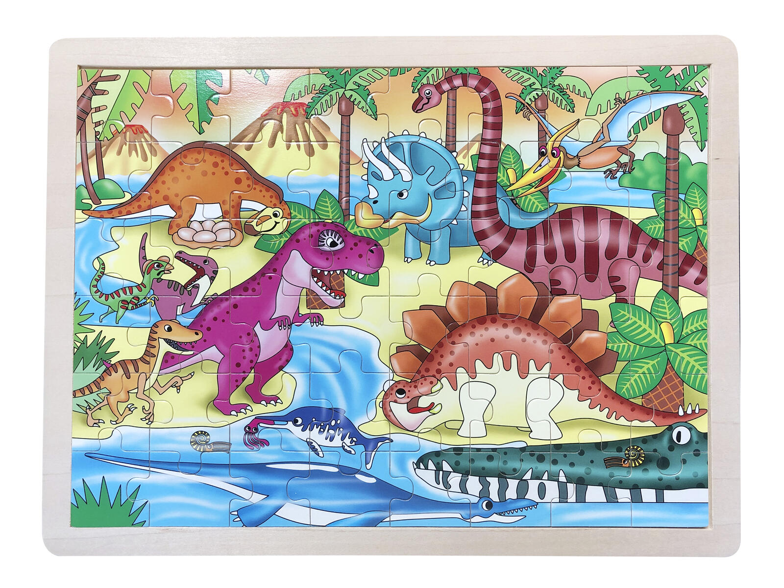 48 handsågade bitar. Ett stort träpussel som passar bra att lägga på golvet, med motiv av dinosaurier. Av FSC-märkt trä. PVC-fri. Från 3 år.