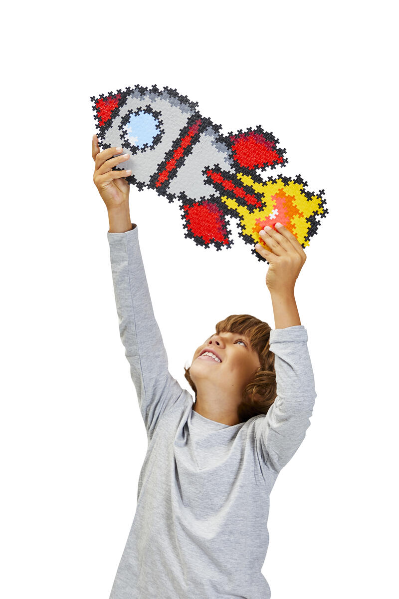 500 delar. Skapa en raket i ett 2-dimensionellt mönster genom att matcha varje tal med motsvarande färg. PLUS-PLUS stimulerar barns lek, lärande, fantasi, kreativitet och finmotorik. Klossarna är lätta att sätta samman och bygga med. När du är klar, använd rymdraketen som underlag för vidare diskusisoner om rymden, stjärnor och planeter. Raketen kan läggas på ett bord eller hängas upp som prydnad, inget lim eller strykning krävs. Av livsmedelsgodkänd PE. PVC-fri. Från 3 år.