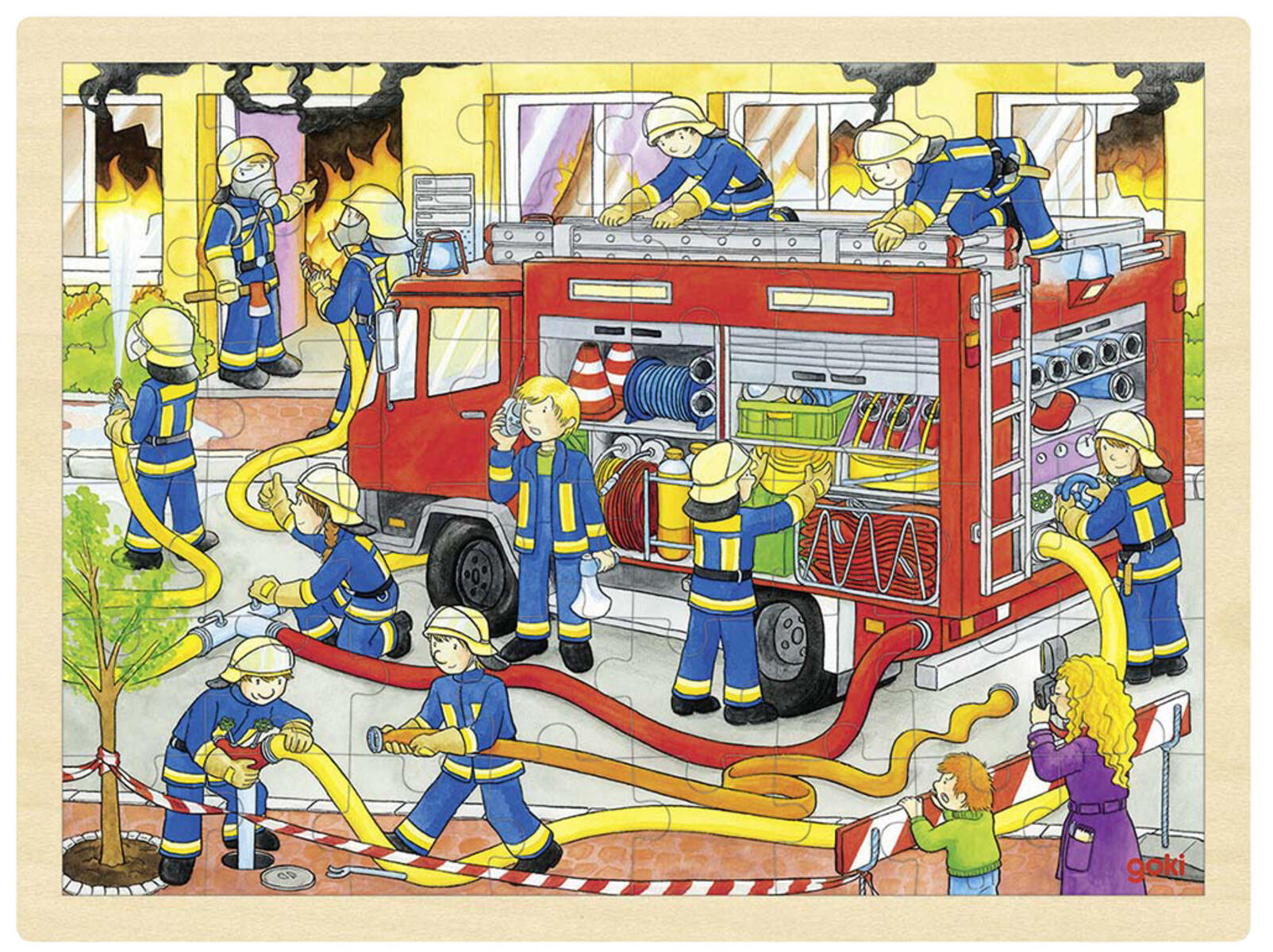 7 bitar. Greppvänligt pussel för de minsta barnen. Motiv med fordonen på en arbetsplats. Lyfter man på en bit ser man en bild av samma bit undertill som gör det enklare för barnen att lägga rätt bit på rätt plats. Av FSC-märkt trä. PVC-fri. Från 2 år.