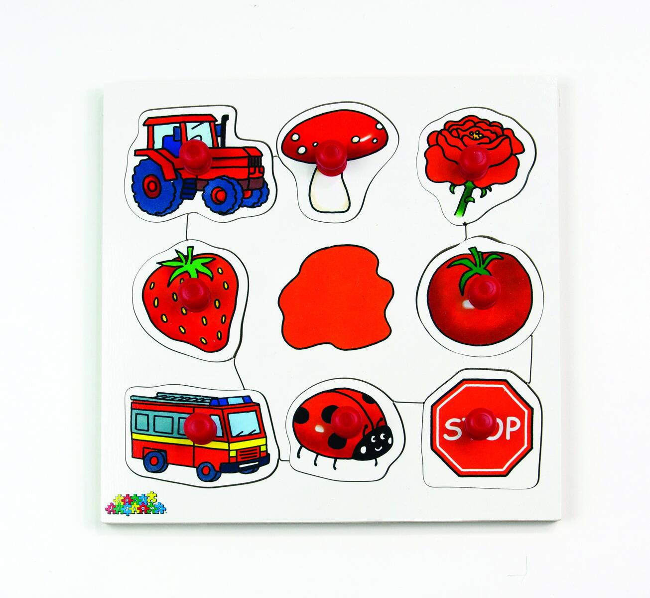 Detta pussel innehåller 4 st mindre knoppussel med olika motiv som de känner igen från vardagen. Namnge olika frukter, sandleksaker, insekter och fordon samtidigt som ni pusslar. 4 handsågade bitar per pussel i trä. Av FSC-märkt trä. PVC-fri. Från 1 år.