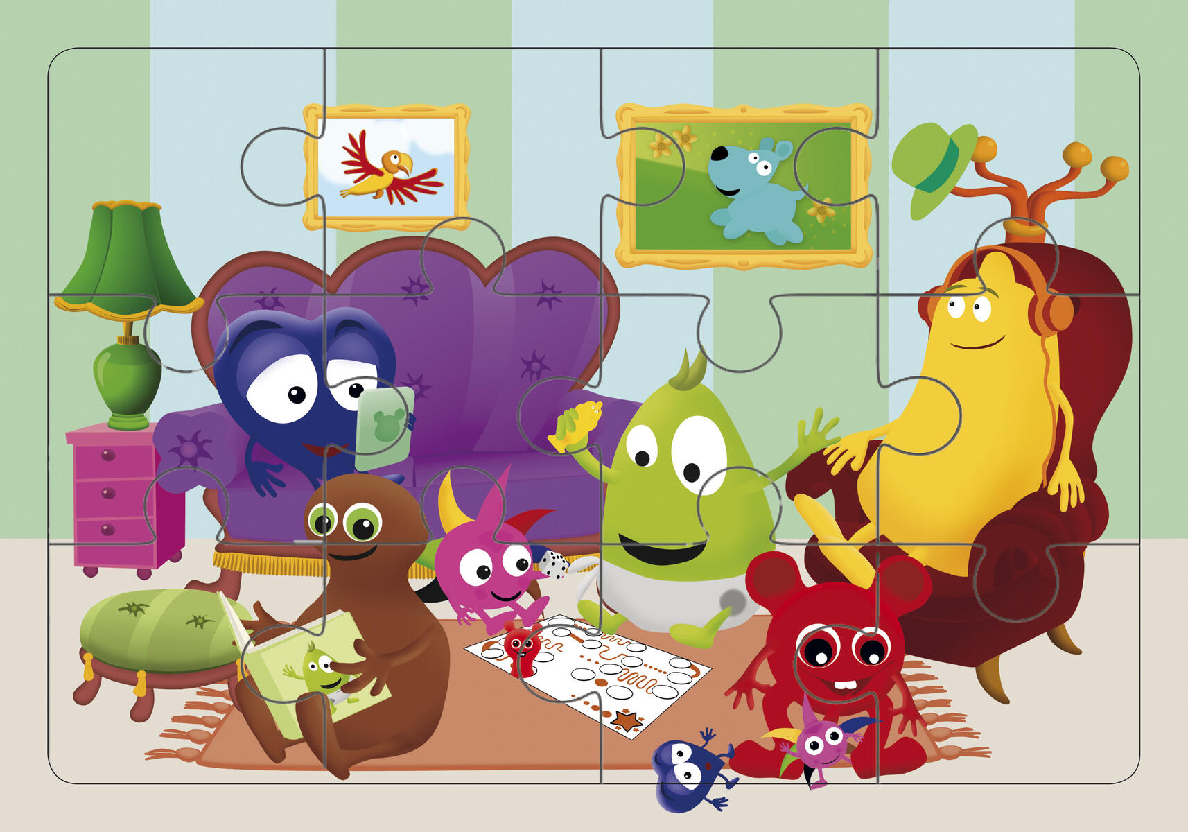 Babba läser, Bibbi lyssnar på musik och Diddi spelar spel. Allt händer i babblarnas vardagsrum. Lägg pusslet och se vad de andra gör! Fint och färgglatt för de lite större barnen. Här tränas färger och former tillsammans med motoriken. 12 pusselbitar med ram. Mått: 30x21 cm. Av trä. PVC-fri. Från 3 år.