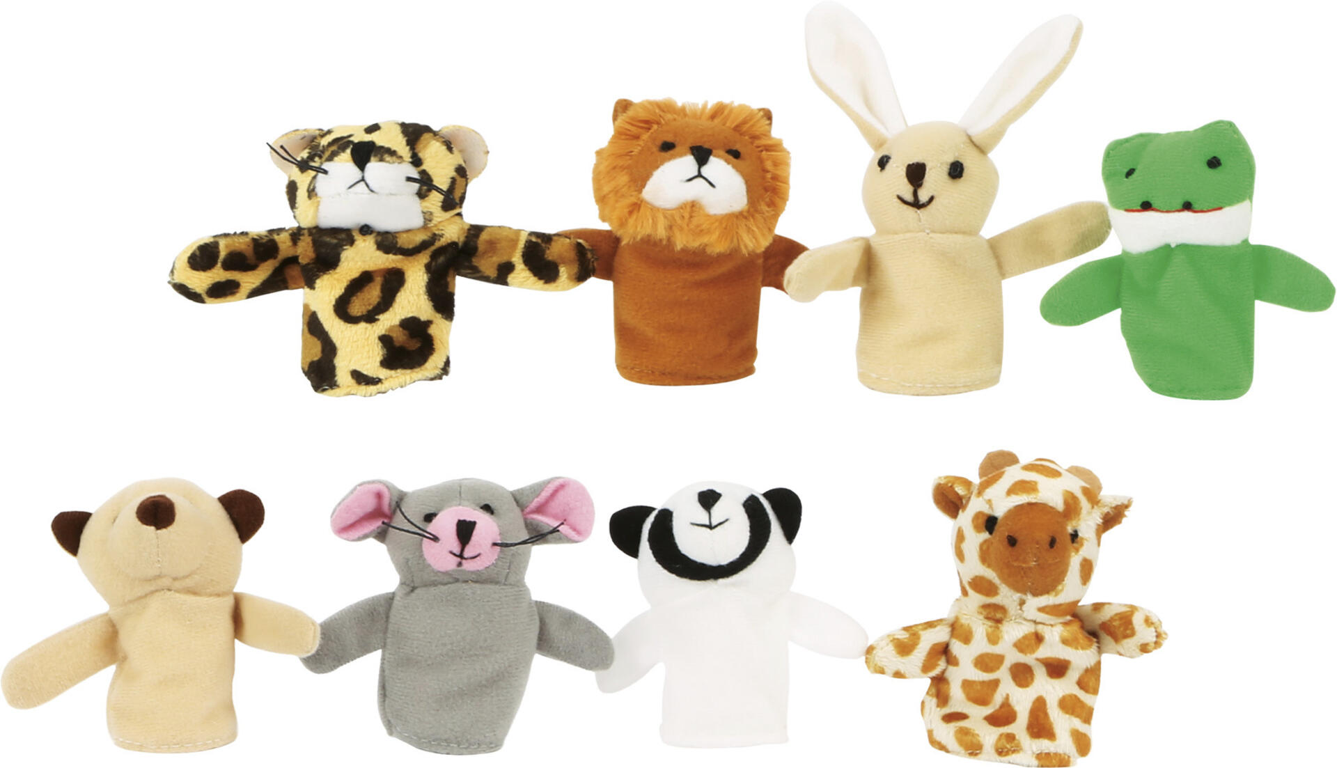 4 st/fp. Härliga fingerdockor av hög kvalitet. Fingerdockor uppmanar till lek och samtal, samt inspirerar till spännande sagor. Kombinera gärna flera dockor för att skapa en mer livfull berättelse. Innehåller en apa, giraff, lejon och en elefant. Mått: 9 cm. Tillverkade i mjukt fleecematerial. PVC-fri.