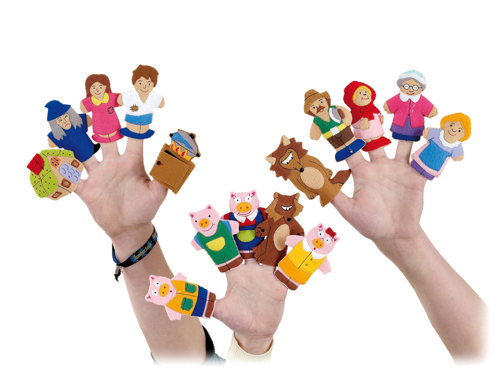 Fingerdockor Rödluvan/Hans och Greta/Tre små grisar 15-pack