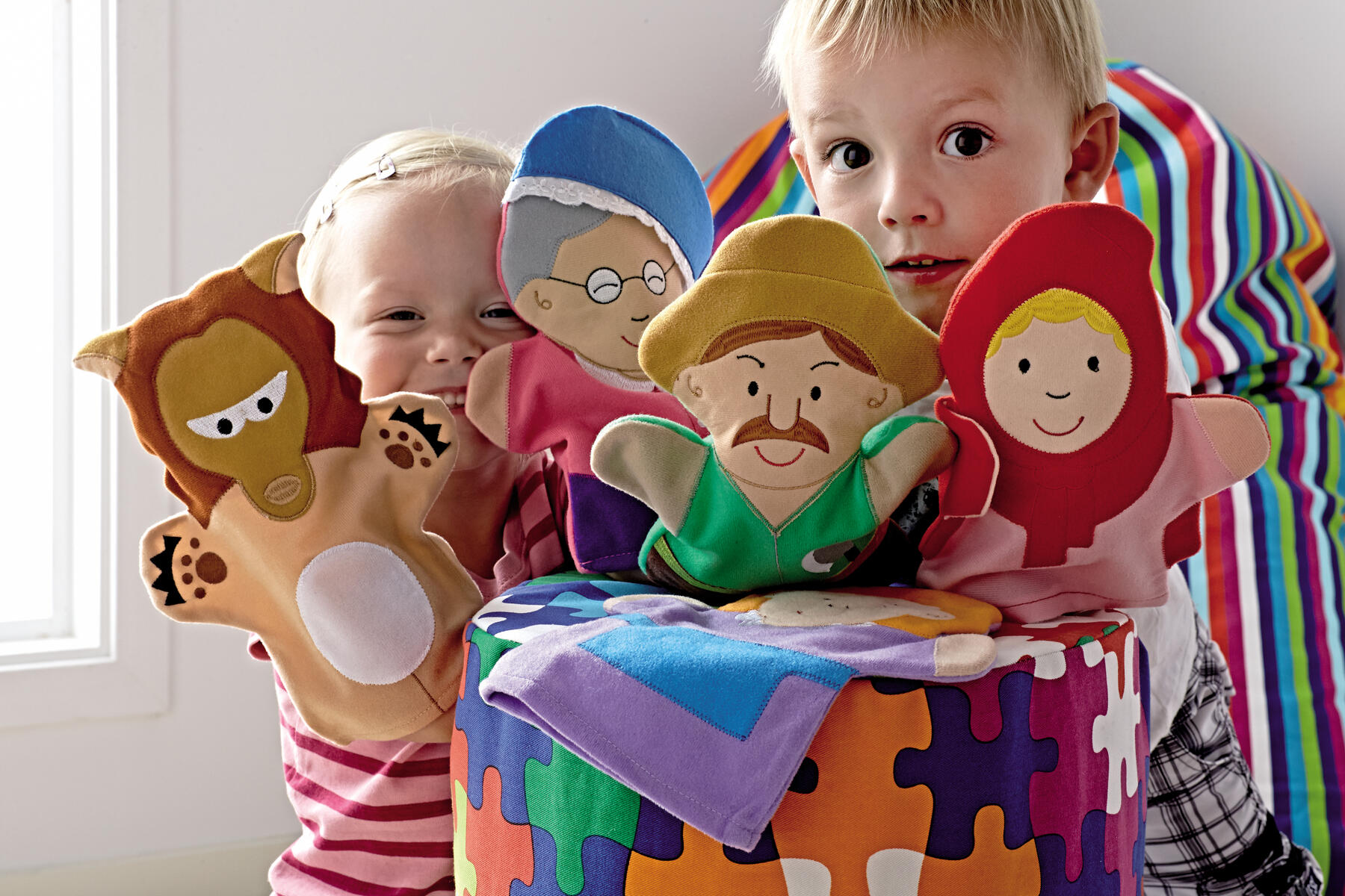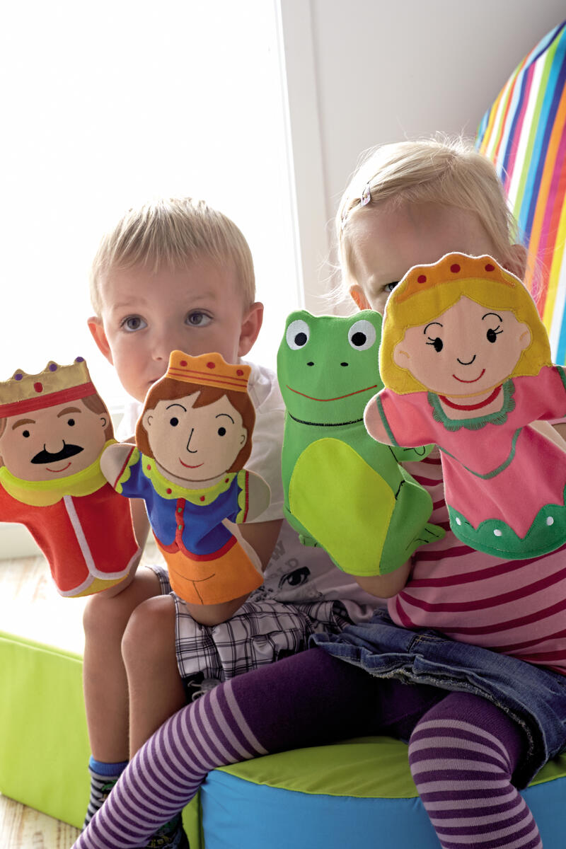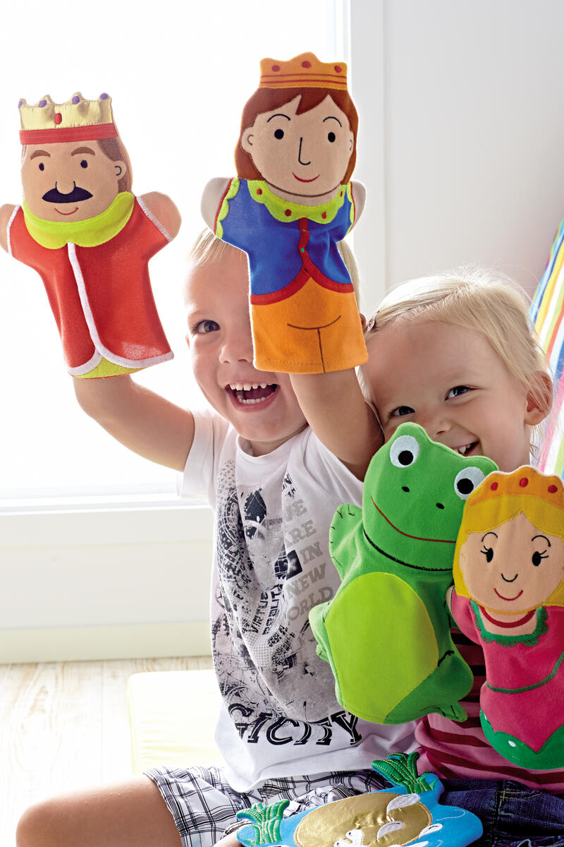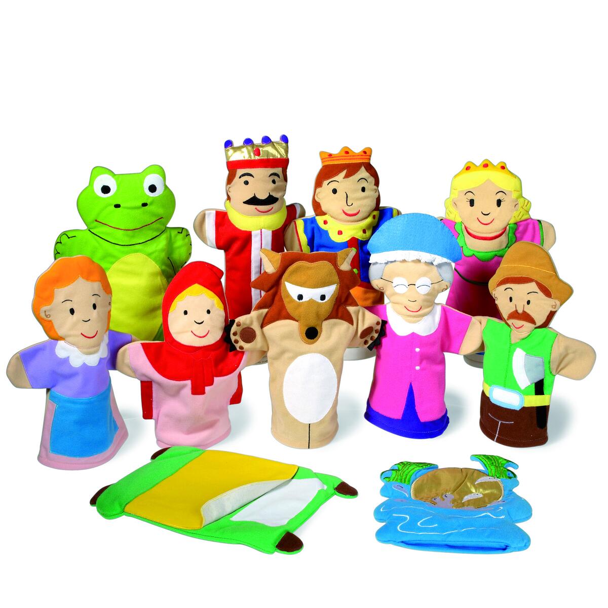 Fina och välsydda handdockor till de kända sagorna Grodprinsen och Rödluvan. Genom att använda handdockor skapar man mer liv i berättandet. Av polyester. PVC-fri. Från 3 år.