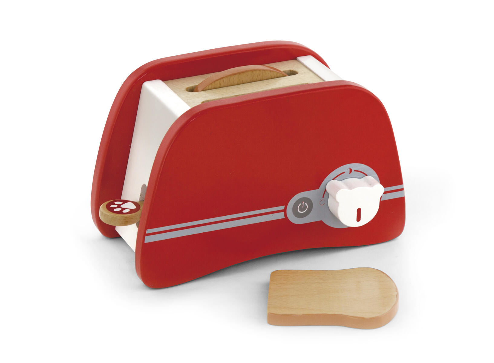Denna fina brödrost av FSC-märkt trä med pop-up-funktion stimulerar barnens kommunikation och fantasi genom rollek. 2 brödskivor i trä ingår. Mått: L9xB19xH11 cm. PVC-fri. Från 3 år.