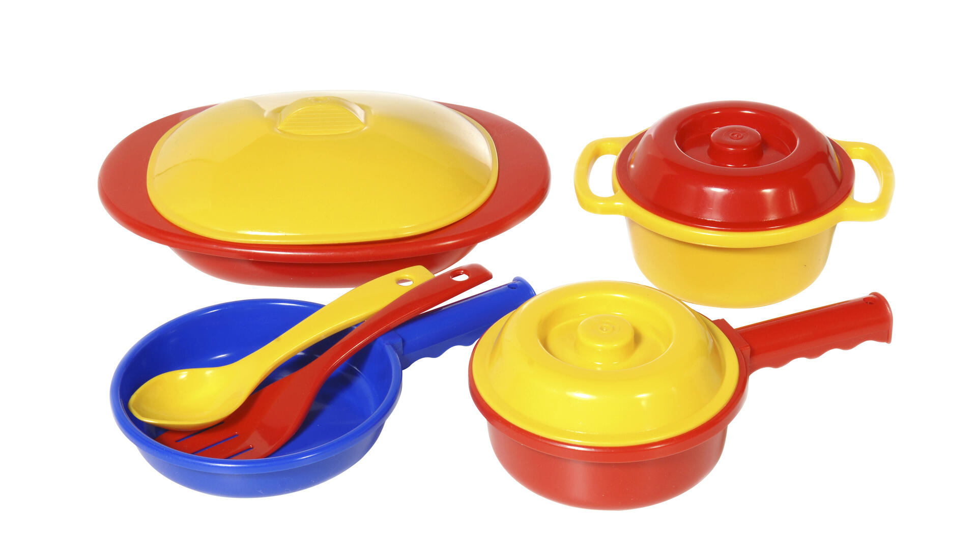 Ett komplett köksset för att koka, baka och servera mat. Tål maskindisk. Av livsmedelsgodkänd PE. PVC-fri. Från 2 år. Svanenmärkt, licensnummer 50950001.
