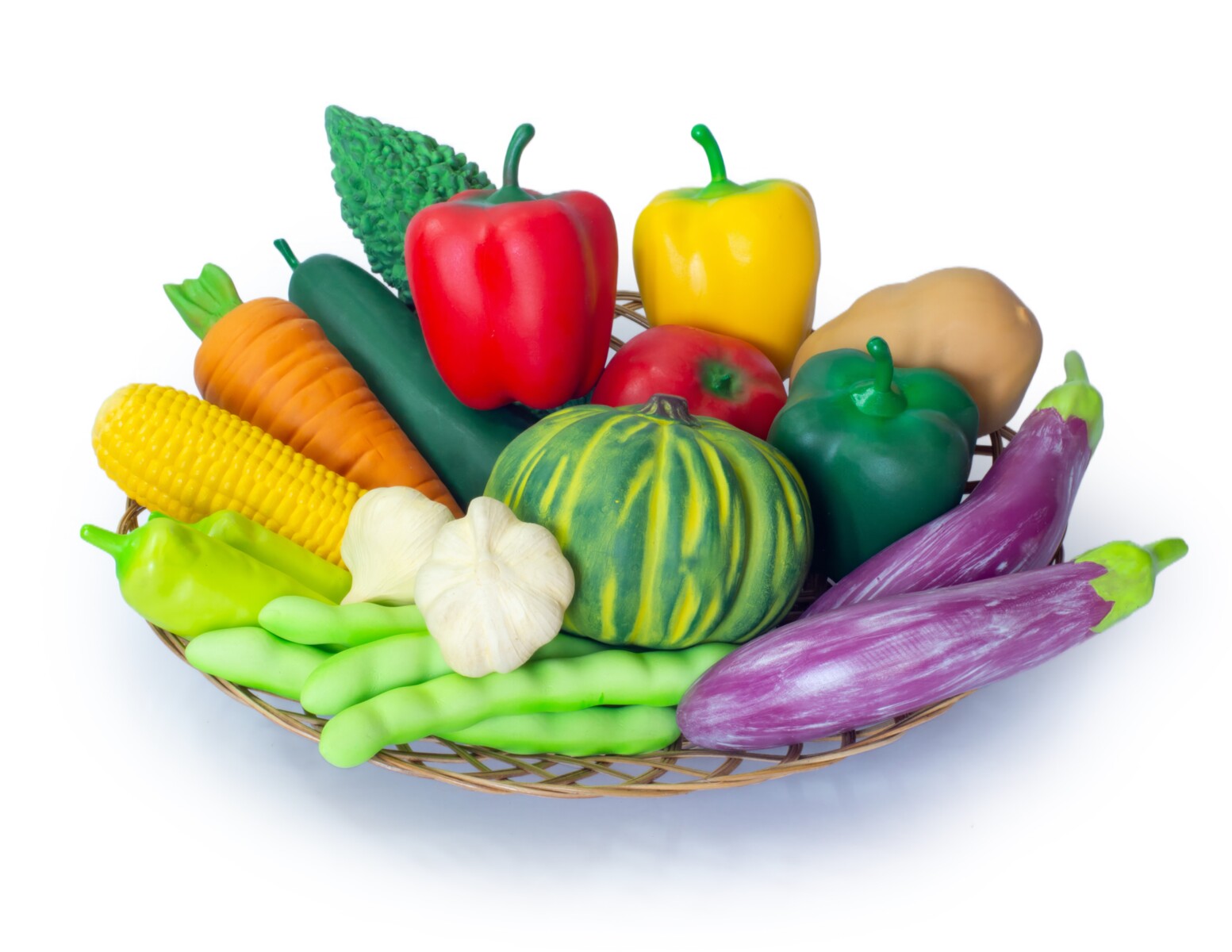 17 st/fp. Mjuka grönsaker för tyst och naturtrogen lek. Av naturgummi. PVC-fri. Från 10 månader. Innehåller bl.a. aubergine, bönor och paprikor. Mått: L4–23,5 cm. Fat ingår ej.