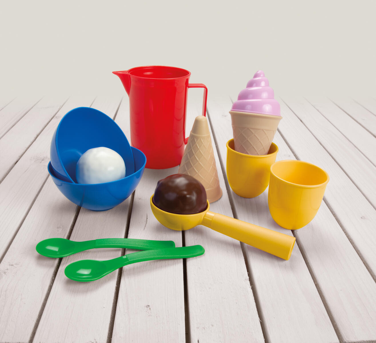 Innehåller 4 våfflor och en glasskopa. De mjuka, barnvänliga sandformarna är elastiska och lätta att rengöra. Av livsmedelsgodkänd PP. Mått: 18x18x6 cm. PVC-fri. Från 1 år.