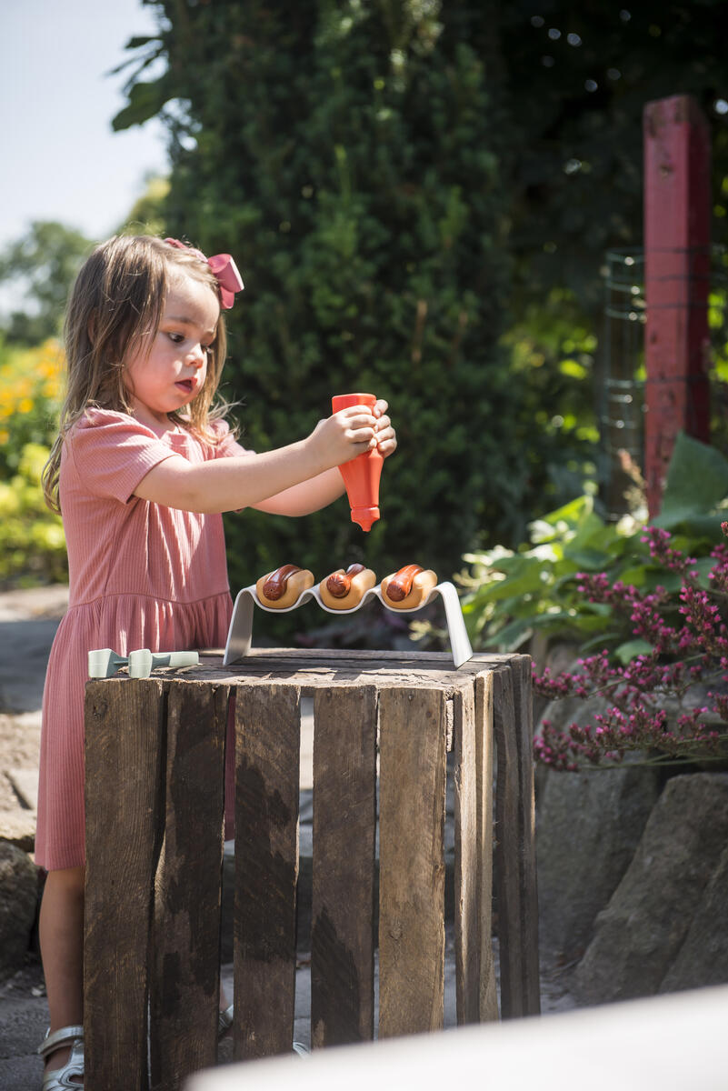 9 st/fp. Bjud dina kompisar på grillfest. Matsetet innehåller 3 korvar med bröd, ketchup, hållare samt en tång. Av livsmedelsgodkänd PE. PVC-fri. Från 2 år. Svanenmärkt, licensnummer 50950001.