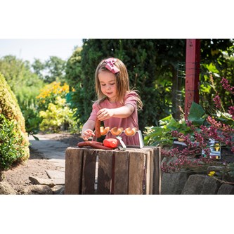 Smaskig chokladtårta med 6 bitar på en bricka. Tårtbitarna sitter ihop med kardborre som kan delas med hjälp av den medföljande träkniven. Av FSC-märkt trä. PVC-fri. Från 2 år.