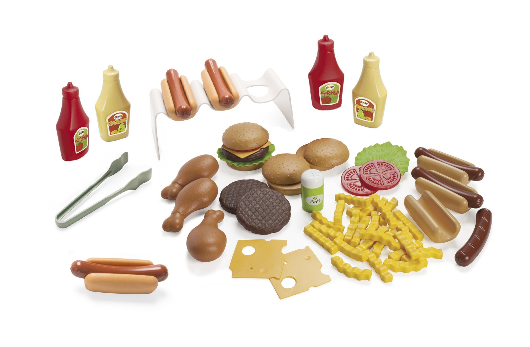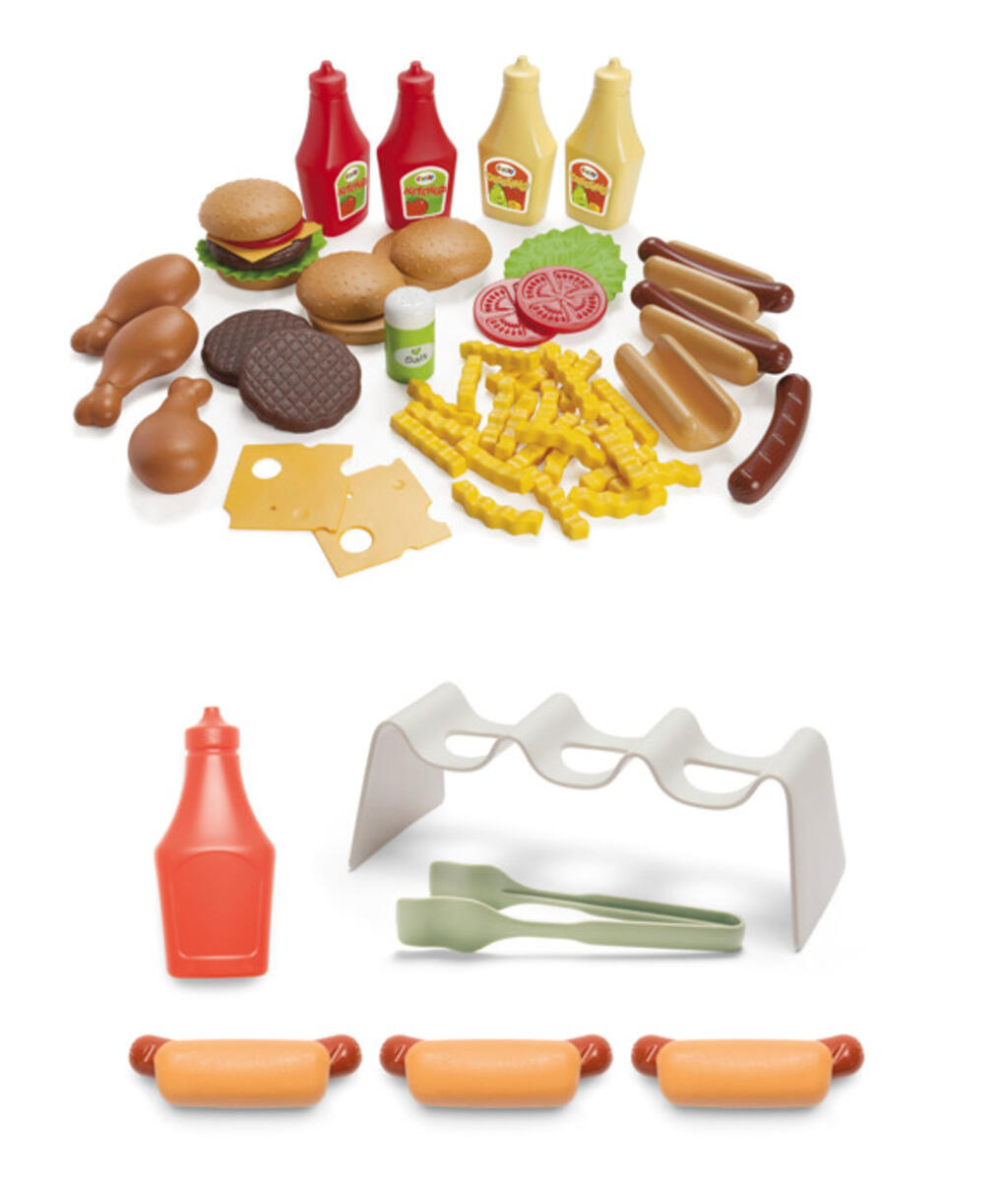 65 delar. Bjud kompisarna på en rolig grillfest. I detta set får du alla tillbehör som behövs. Innehåller korv och hamburgare med bröd, kycklingklubbor, sallad, tomatskivor, ostskivor, pommes frites, ketchup och senap. Av livsmedelsgodkänd PE. Svanenmärkt, licensnummer 50950001. Från 2 år.