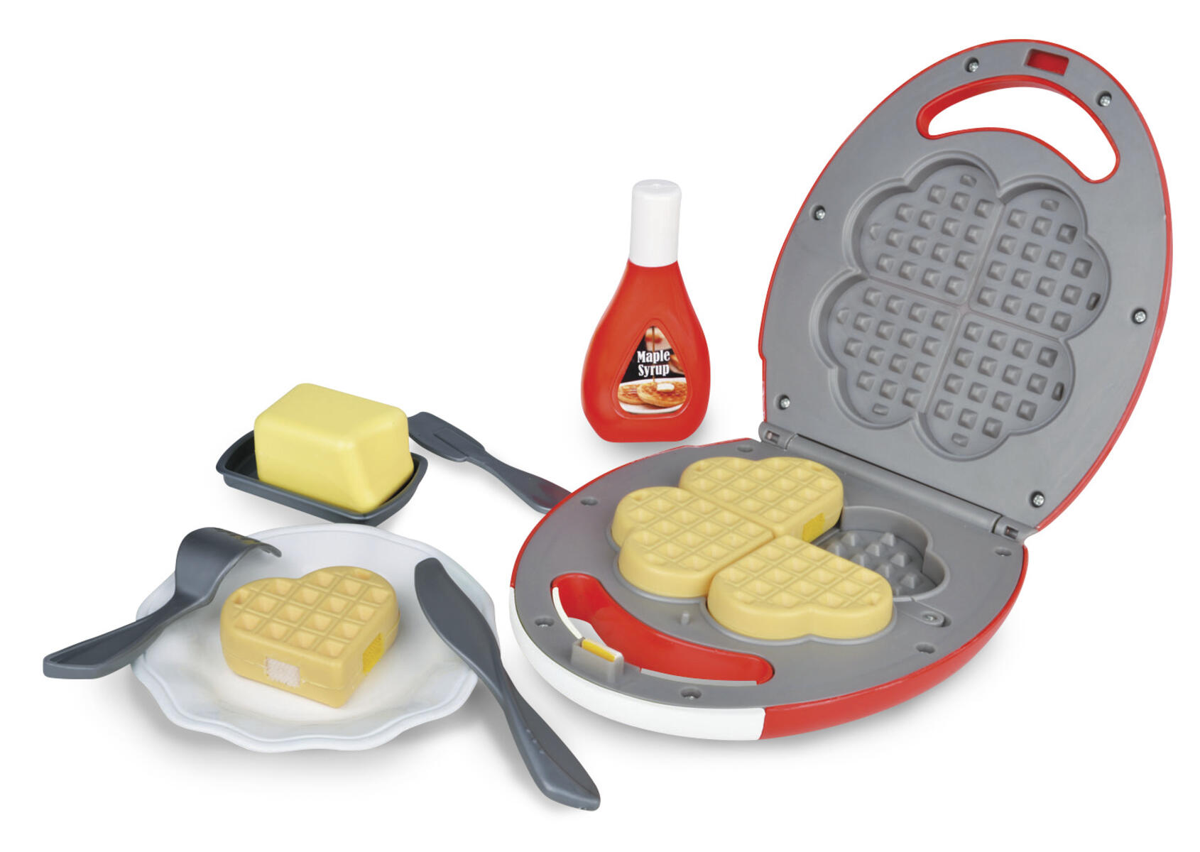 12 delar/fp. Gör mumsiga våfflor med detta fina våffeljärn. Innehåller en våffla som går att dela, en tallrik, ett par bestick, en flaska lönnsirap och smör att ha till våfflan. Med ljus- och ljudeffekt som drivs av medföljande 2 st AAA-batterier (R03). Från 3 år.