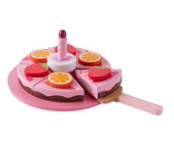 16 delar. Leksakstårta av trä som kan delas i sex tårtbitar. Tårtbitarna sitter ihop med kardborre i sidorna. Tårtspade ingår. Mått: fat ø 20 cm och tårta ø 14,5 cm. Av FSC-märkt trä. PVC-fri. Från 3 år.