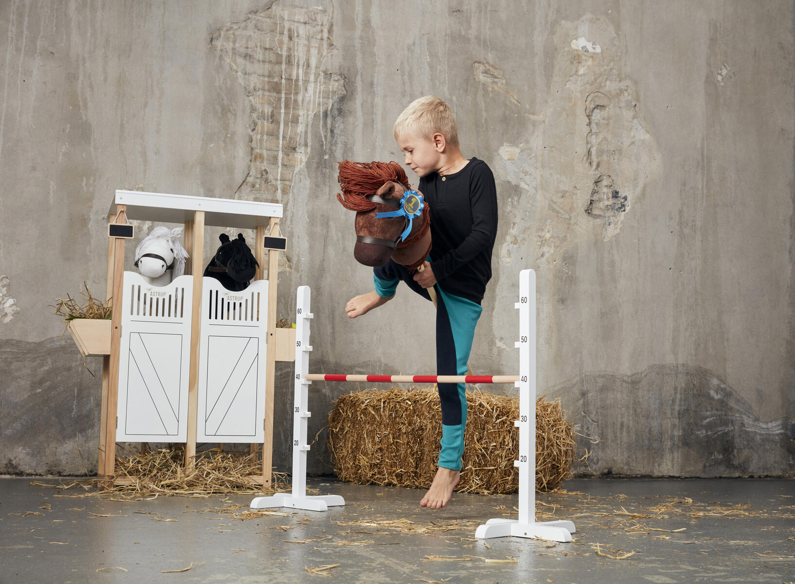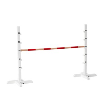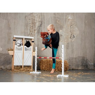 Träna hoppning med din käpphäst. Hinder i trä med ribba som kan justeras 20–60 cm höjd. Hindret är utformat så att ribban lätt faller av och därmed minimerar risken för olyckor. Mått: 116x67x30 cm. Av FSC-märkt trä, MDF och plywood. PVC-fri. Från 3 år.